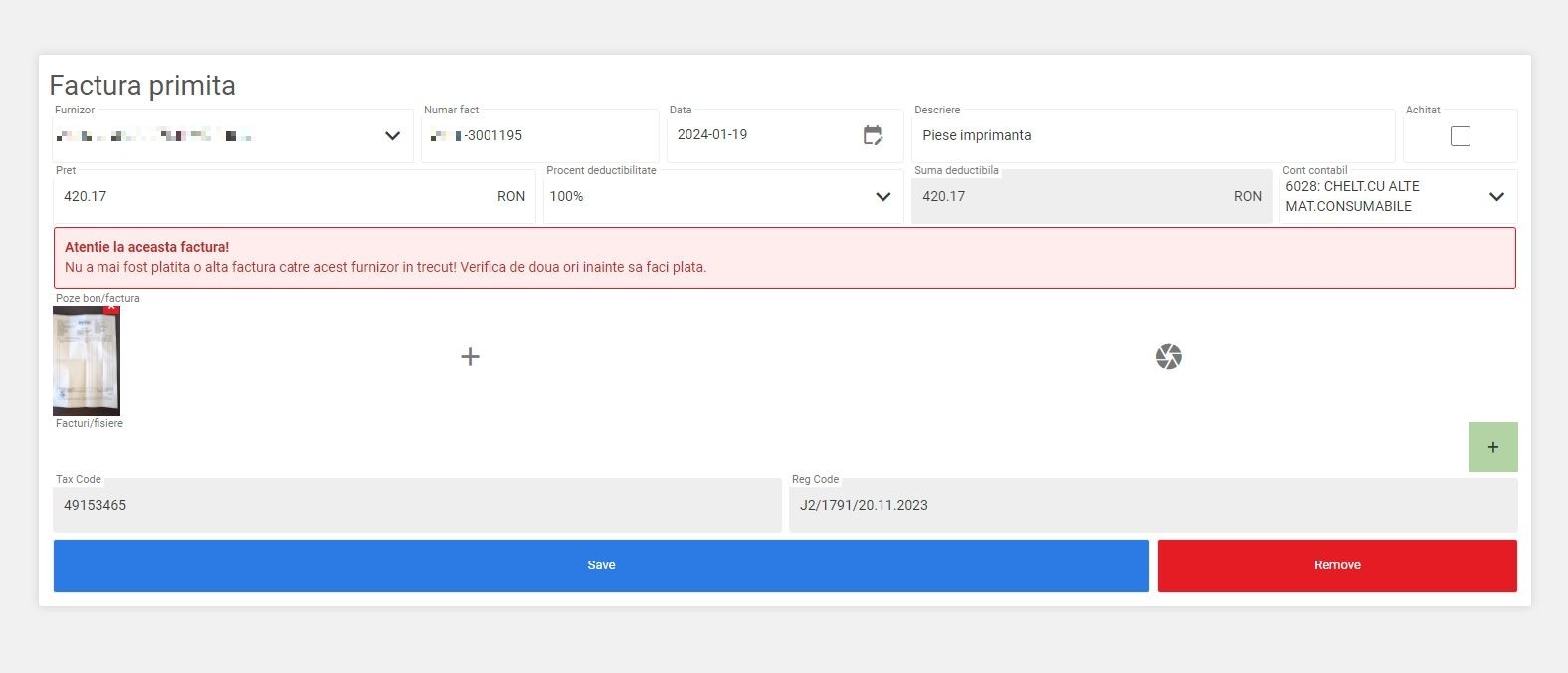 De aceea am implementat o alerta care sa va atentioneze ca furnizorul caruia urmeaza sa ii platiti nu a fost verificat, mesaj menit sa va creasca atentia, pentru ca nu cumva sa lpatiti din greseala o factura nelegitima.
